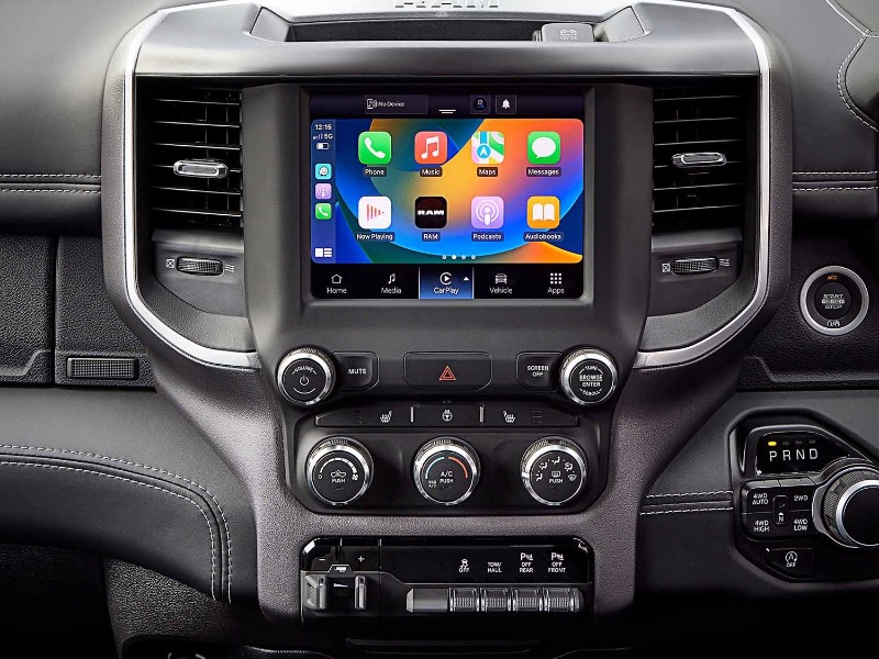 The Ram 1500 Big Horn® is packed with practical tech and useful features. The 8.4" Uconnect touchscreen comes with wireless Apple Carplay™ and Android Auto™ connectivity, as well as convenient steering wheel mounted audio controls. The Big Horn® also features front and rear ParkSense® Park Assist, power and heated door mirrors, electro-chromatic rear view mirror, electric rear sliding cab window and much more.