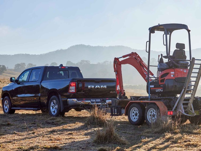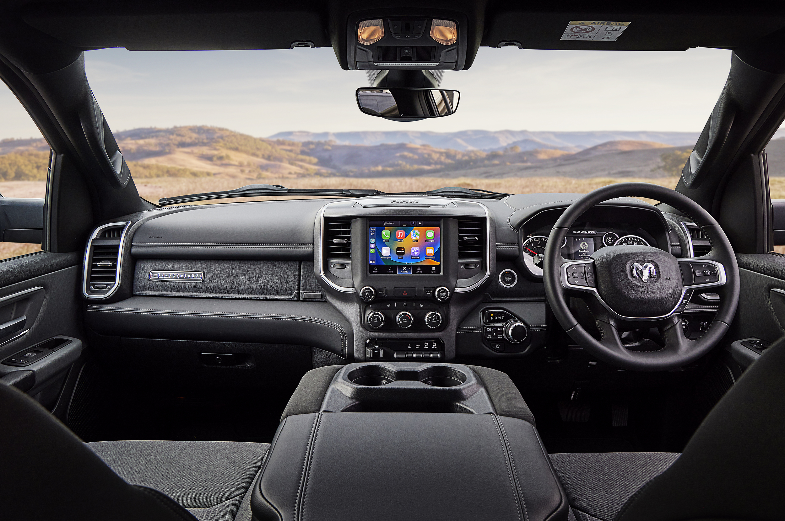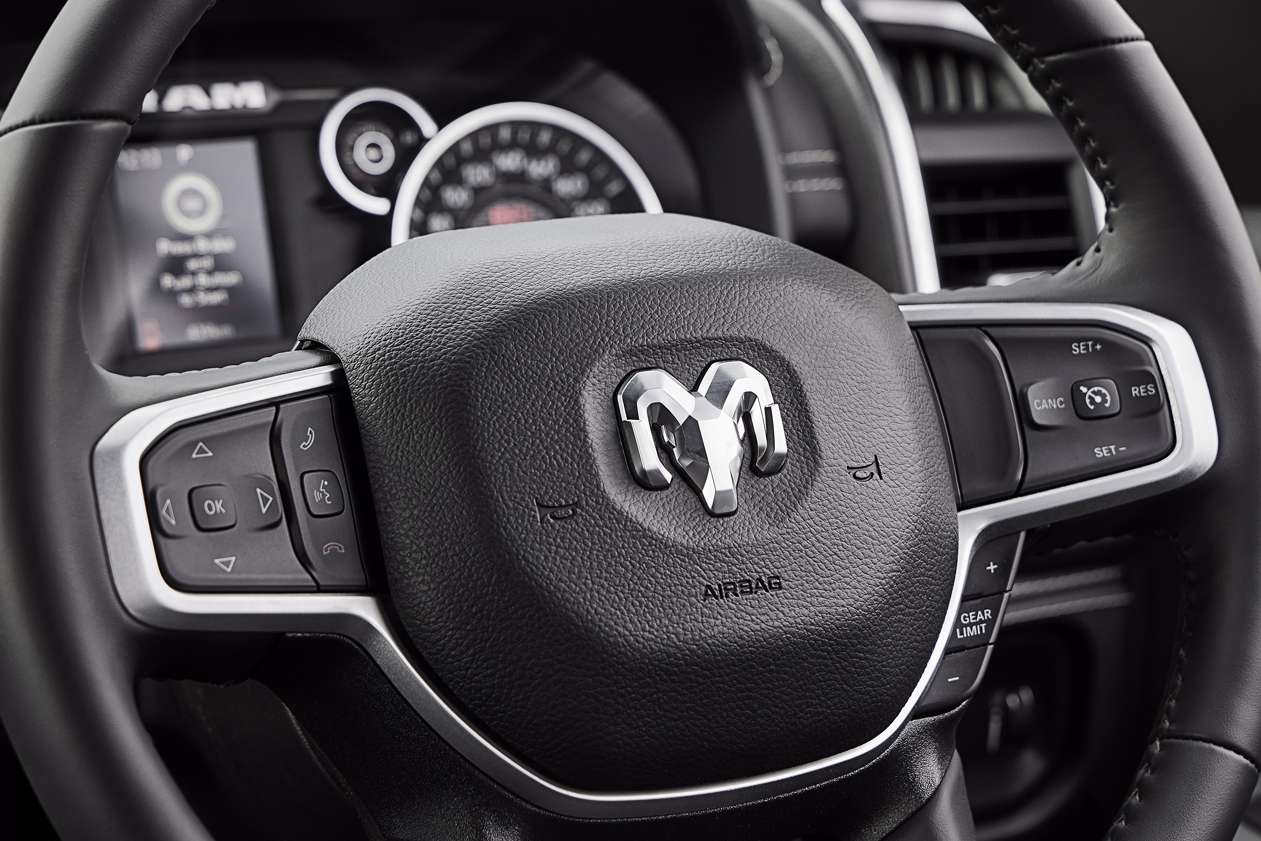 Available in either 5'7" or 6'4" cargo tub versions, the Ram 1500 Big Horn® features a bedliner and load tray illumination as standard, along with a central locking tailgate equipped with a fully damped tailgate release. The 6'4" cargo tub variant boasts the largest tub size across the 1500 range, delivering more load-carrying capacity than before possible across its DT stable mates. The cargo tub width will take a full-size pallet with ease and you’ll still have space left over for all kinds of gear, regardless of which tub length you opt for. This no-nonsense practicality continues with multiple tie-down points, a deployable bed step and up to 878kg payload on the 6'4" tub variant, making it perfect for the job site during the week and out and about for weekend adventures.