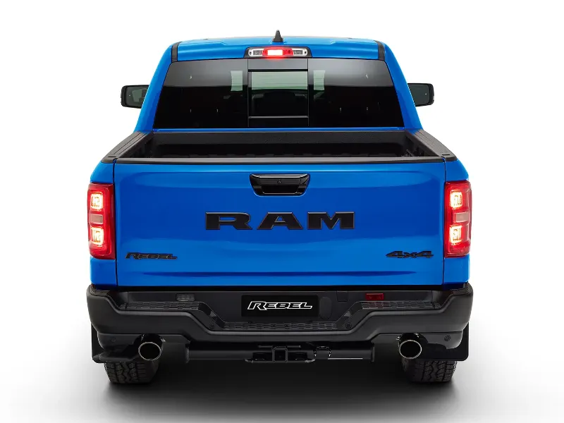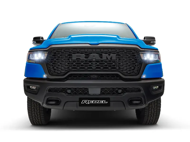 The new 2025 Ram 1500 is reimagined with a modern, contemporary exterior design that represents the bold, heroic presence Ram is known for. The instantly recognisable exterior incorporates a sleeker, more aerodynamic appearance. A new, larger, forward-leaning grille takes boldness to another level. The iconic RAM grille on the front, and the prominent R-A-M badge on the rear makes a proud statement. The exterior design is finished with a host of unmistakably rugged accents for a unique off-road look, exclusive to the Rebel. These include a signature Rebel grille, sport performance hood, black powder-coated steel front and rear bumpers, black off-road fender flares, a raised right height, rear Rebel decals, and more.