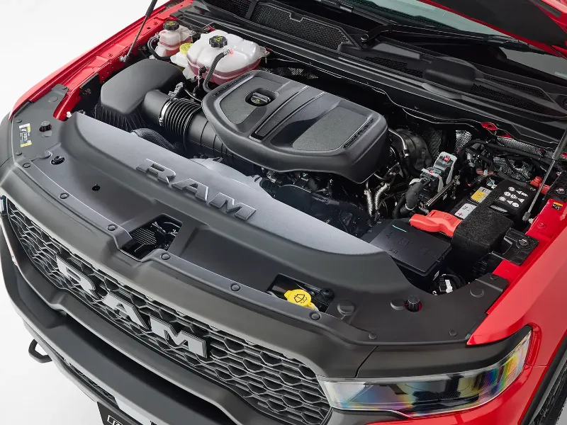 The 3.0L Hurricane straight-six twin turbo engine is the next evolution of Internal Combustion Engine (ICE) technology. The firing order, number of main bearings, the crank design, all work together to deliver a smoother, more efficient, and more powerful powertrain. It's the most power-dense package RAM has ever offered. There's more power per litre than the supercharged alcohol-injected HEMI®-powered Dodge Demon 170 — along with the incredible torque on demand that inline designs are known for, as well as superior fuel economy.
