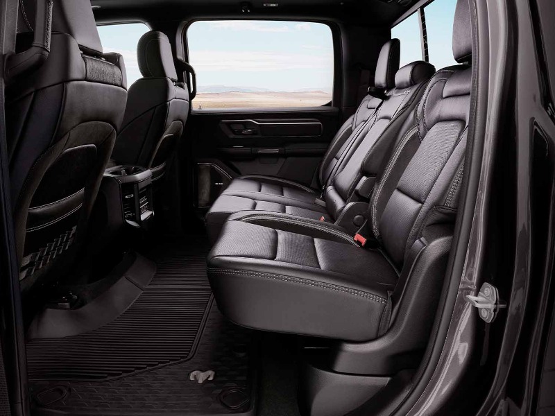 A menacing grille, functional air intake scoop and flow-through R-A-M badge ensure unobstructed airflow to the engine. A performance-tuned dual exhaust system uses two resonance-free pipes to emit an enthralling growl from the massive 5-inch matte-black exhaust tips.