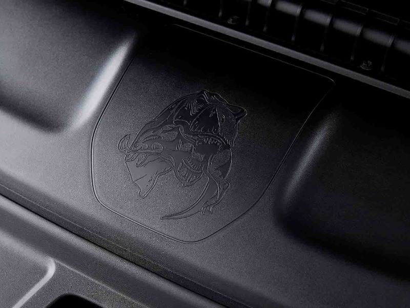 The all-new RAM TRX® features an aggressive stance and an impossibly wide, muscular body wrapped over the top of it. Like a mixed martial arts fighter in a tailored tuxedo, the RAM TRX® makes an impactful visual statement with an acute “hourglass” body design that features composite flares and fender wells that have been stretched to cover aggressive 35-inch Goodyear Wrangler® Territory 325/65/R18 tyres. Design elements, like the unique and functional hood scoop is responsible for half of the air entering the 6.2-litre supercharged HEMI® V8 engine while the other half enters through the grille. The innovative intake system is engineered to minimise power-robbing air restrictions while ensuring only clean, cool air reaches the engine, and quickly. Further enhancing the visual impact, oversized tow hooks at the front and rear of the truck, and integrated 5-inch dual exhaust ports drive the functional performance objective home.