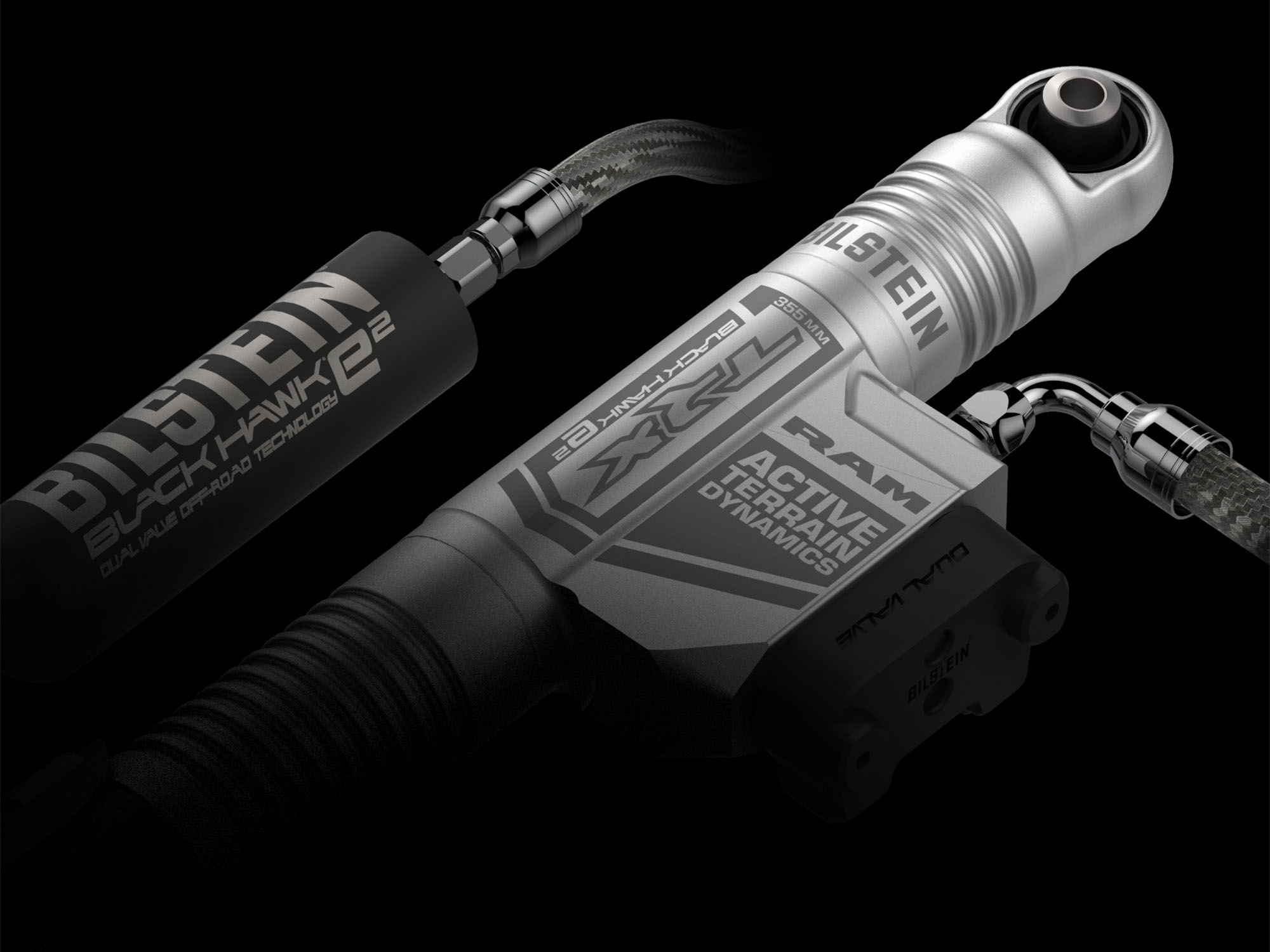 Designed bolt by bolt to handle and conquer the most punishing conditions with extreme capability and durability, structural components have been meticulously considered. The frame is composed of thicker, optimally shaped, strategically placed high-strength steel and to protect critical components including the front axle, transfer case, transmission pan and fuel tank, the TRX® employs five skid plates. The use of lightweight, high-strength aluminium for the hood and tailgate assists in reducing weight and boosting fuel economy. An all-new suspension system features upgraded components to provide enhanced performance and improved endurance. An independent front suspension system with active damping includes new front upper and lower control arms with special attention paid to the caster and camber angles during suspension cycling. The new rear suspension system with active damping and an exclusive five-link coil system provides incredible ride characteristics, durability, and better articulation over obstacles than a leaf-spring system. The Bilstein® Black Hawk® e2 adaptive performance shocks have been tuned to demonstrate the optimum balance between on-road handling and class-leading off-road capability. A Dana 60® rear axle with full-floating axle shafts is standard and handles the increased torque output, rear electronic locking differential and 35” tyres. This rear axle uses an axle hop damper that gives improved traction and axle control on rough surfaces. Off-road, the RAM TRX® will race to 159km/h with ease, and the segment’s largest brakes will bring it to a composed halt.