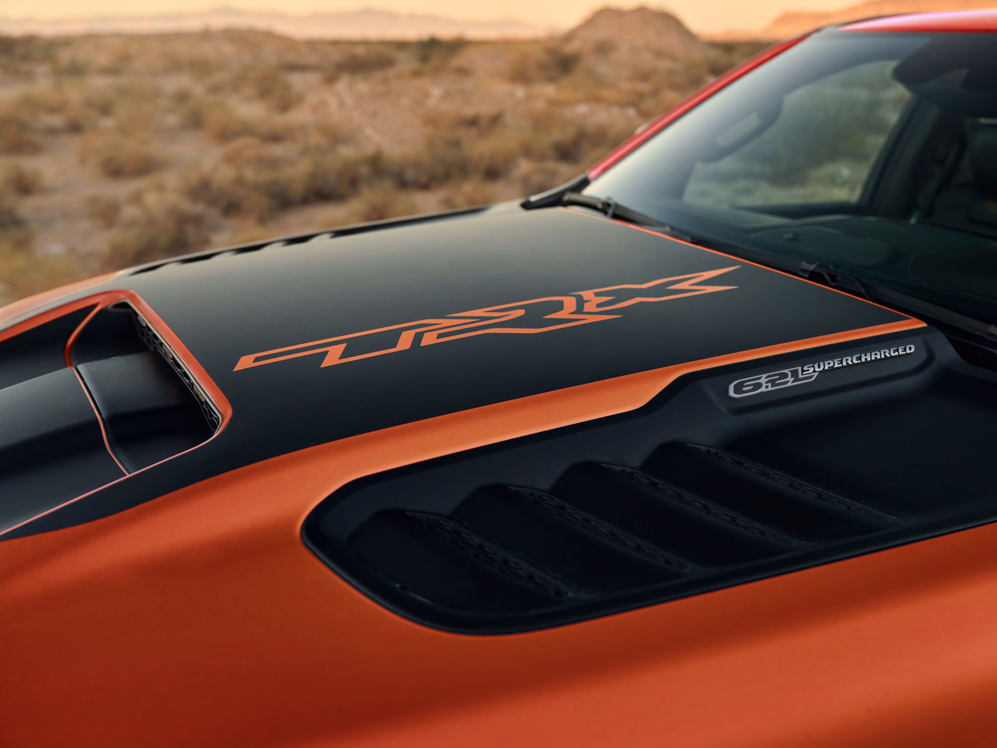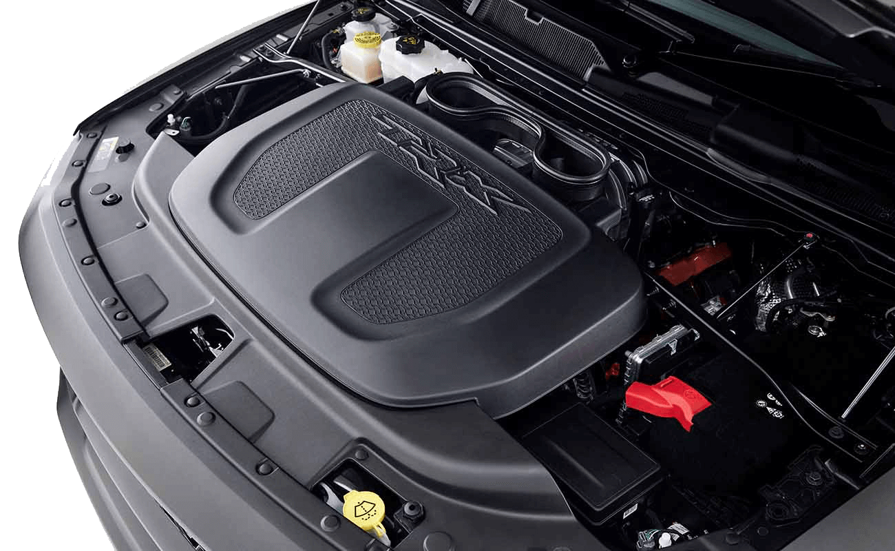 The SRT® developed powertrain delivers top output and consistent performance for extended driving sessions, even in the most gruelling of environments. Stratospheric power and performance numbers were achieved in part through a new, innovative high-performance dual-path air induction system that feeds massive amounts of air to the supercharger. A TRX®-specific power-domed aluminium hood helps clear the engine’s extra height. A robust cast-iron block restrains a forged-steel crankshaft with induction-hardened bearings, all engineered to withstand firing pressures of 1,595 psi—the equivalent of 20,000 lb of force. Launch control as standard and 8 different drive modes ensure that no matter where you’re heading, you’ll have full command over your terrain.