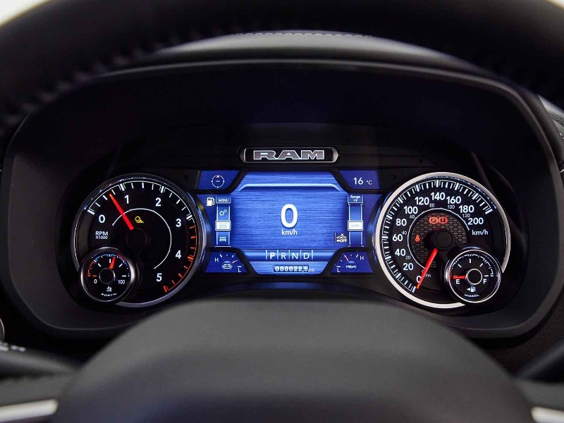 Designed to be the most technologically advanced heavy duty pickup ever, the new Ram 3500 Laramie® is loaded with an array of innovative and state-of-the-art features. The award-winning fourth-generation Uconnect® system offers new convenience and connected services to keep Ram truck customers connected, engaged and informed whilst keeping their hands on the wheel and eyes on the road. The Uconnect® 4C NAV system features a 12-inch reconfigurable touchscreen and state-of-the-art connectivity. Personalisation is made easy with the display split screen, allowing two different applications for desired configuration, such as Apple CarPlay® and climate controls, or one application, such as navigation across the entire 12-inch touchscreen. Another tech feature of the heavy duty range is the digital rear-view mirror which increases the visibility of the surroundings behind the vehicle, as well as a clearer, brighter view in dark or poor light weather conditions. An active noise cancellation system with anti-vibration devices and acoustic glass significantly reduces ambient cabin sound levels to produce the quietest heavy duty Ram ever.