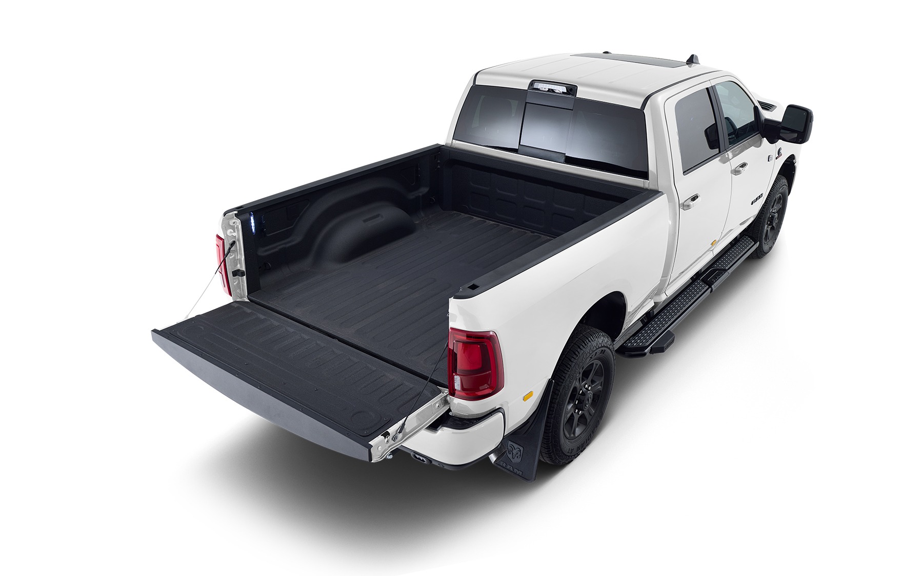 The new 2025 Ram 2500 doesn’t just work hard—it also looks good doing it. On the exterior, you’ll find a new-look front fascia and grille, LED headlamps, and front fog lamps. A host of black accents on the grille, badges, wheels, and wheel-to-wheel side steps combine to perfectly complement the Mopar sport performance hood for a bold, no-nonsense, menacing look to let the world know you mean business.